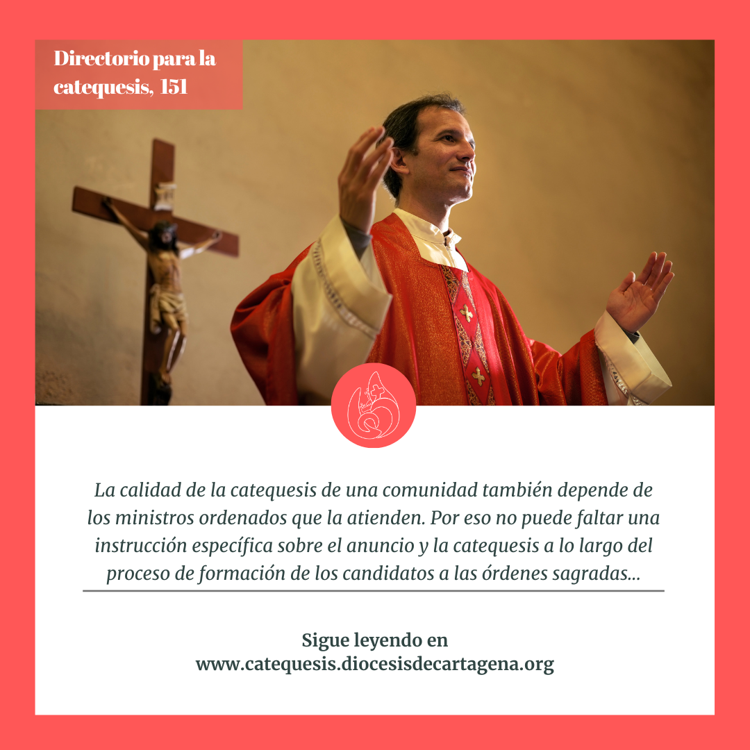 La calidad de la catequesis de una comunidad también depende de los ministros ordenados que la atienden. Por eso no puede faltar una instrucción específica sobre el anuncio y la catequesis a lo largo del proceso de formación de los candidatos a las órdenes sagradas (cf. OT, n. 19). La adecuada formación de los futuros sacerdotes y diáconos permanentes en esta área se verá, pues reflejada en signos concretos: pasión por el anuncio del Evangelio, habilidad para catequizar a los fieles, capacidad de dialogar con la cultura, espíritu de discernimiento, voluntad de formar catequistas laicos y de colaborar con ellos, competencia para diseñar creativamente itinerarios de educación a la fe.
