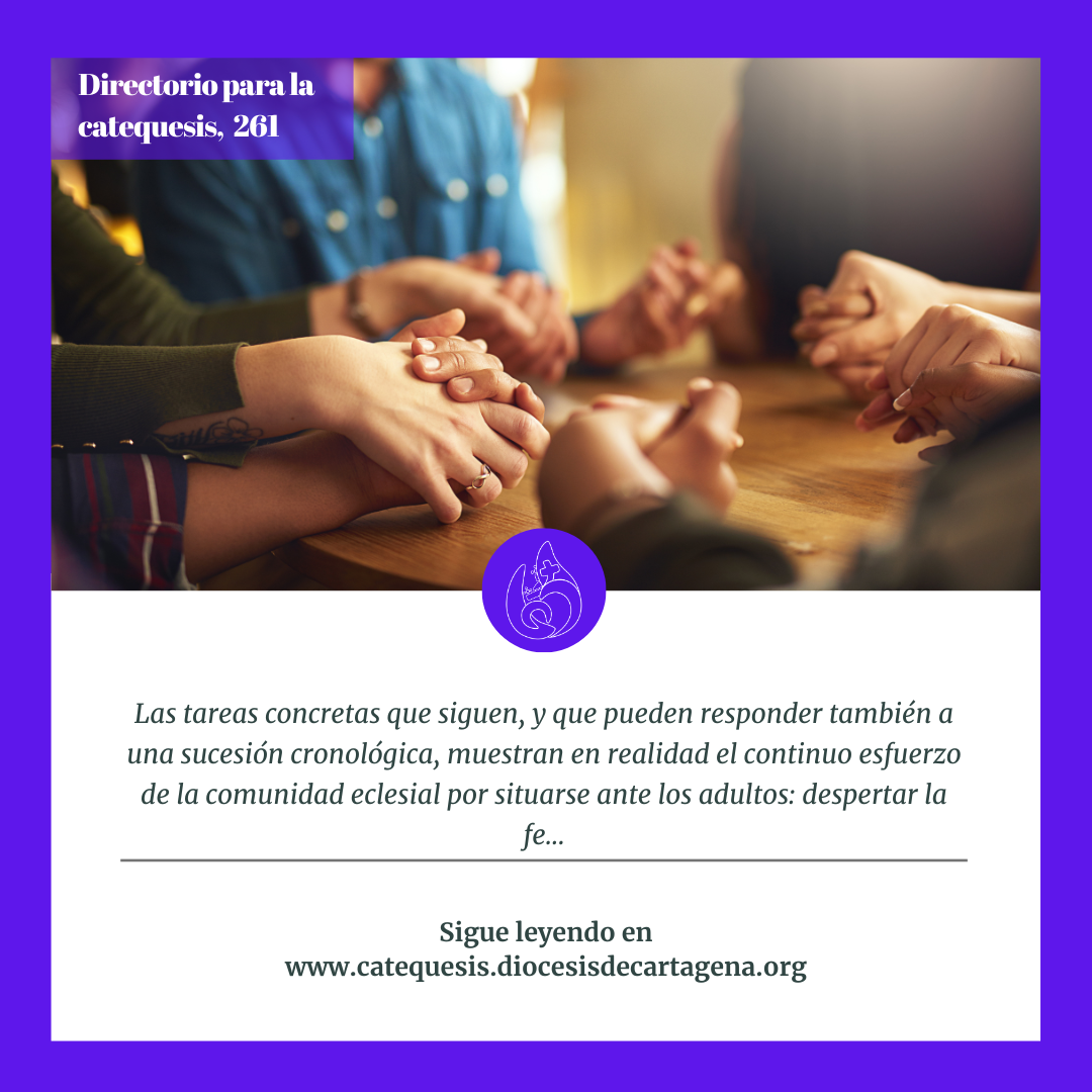 Las tareas concretas que siguen, y que pueden responder también a una sucesión cronológica, muestran en realidad el continuo esfuerzo de la comunidad eclesial por situarse ante los adultos: despertar la fe; purificar la fe; alimentar la fe; ayudar a compartir y testimoniar la fe.