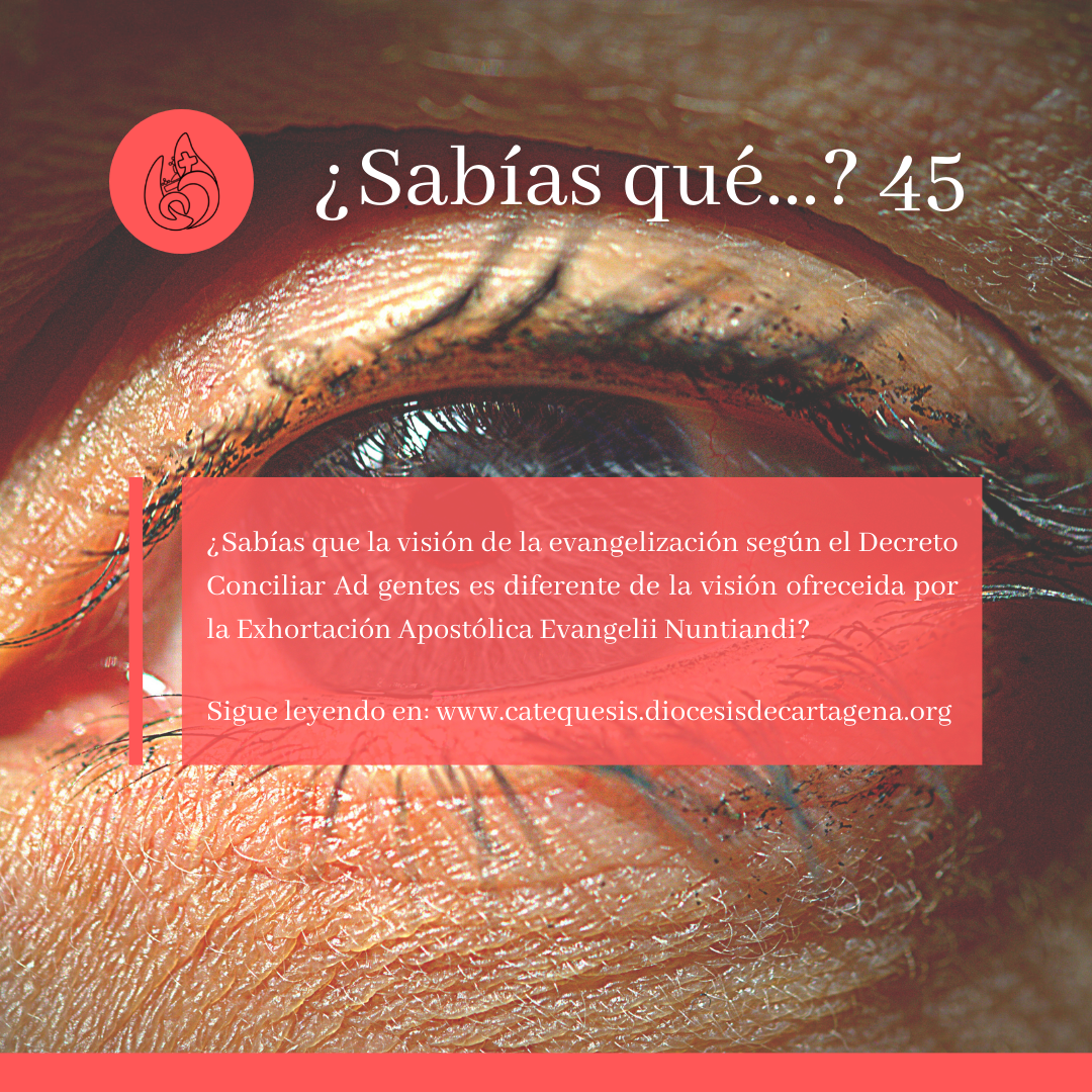 ¿Sabías que la visión de la evangelización según el Decreto Conciliar Ad gentes es diferente de la visión ofreceida por la Exhortación Apostólica Evangelii Nuntiandi? Parte I. Según Ad gentes la acción misionera de la Iglesia aparece constituida de cuatro momentos sucesivos: a) el testimonio de la vida, el diálogo, la presencia de la caridad; b) la evangelización y la conversión; c) el catecumenado y la iniciación cristiana; d) la formación de la comunidad cristiana. En esta perspectiva, la evangelización aparece como un ‘momento’ específico de la actividad misionera de la Iglesia y, precisamente, la acción dirigida a suscitar la conversión y el primer acto de fe, que precede al ingreso en el catecumenado (AG 7). Este ajuste y terminología es recibida por el Directorio Catequístico General, que distingue evangelización y catequesis, y por el Ordo Initiationis Christianae Adultorum.