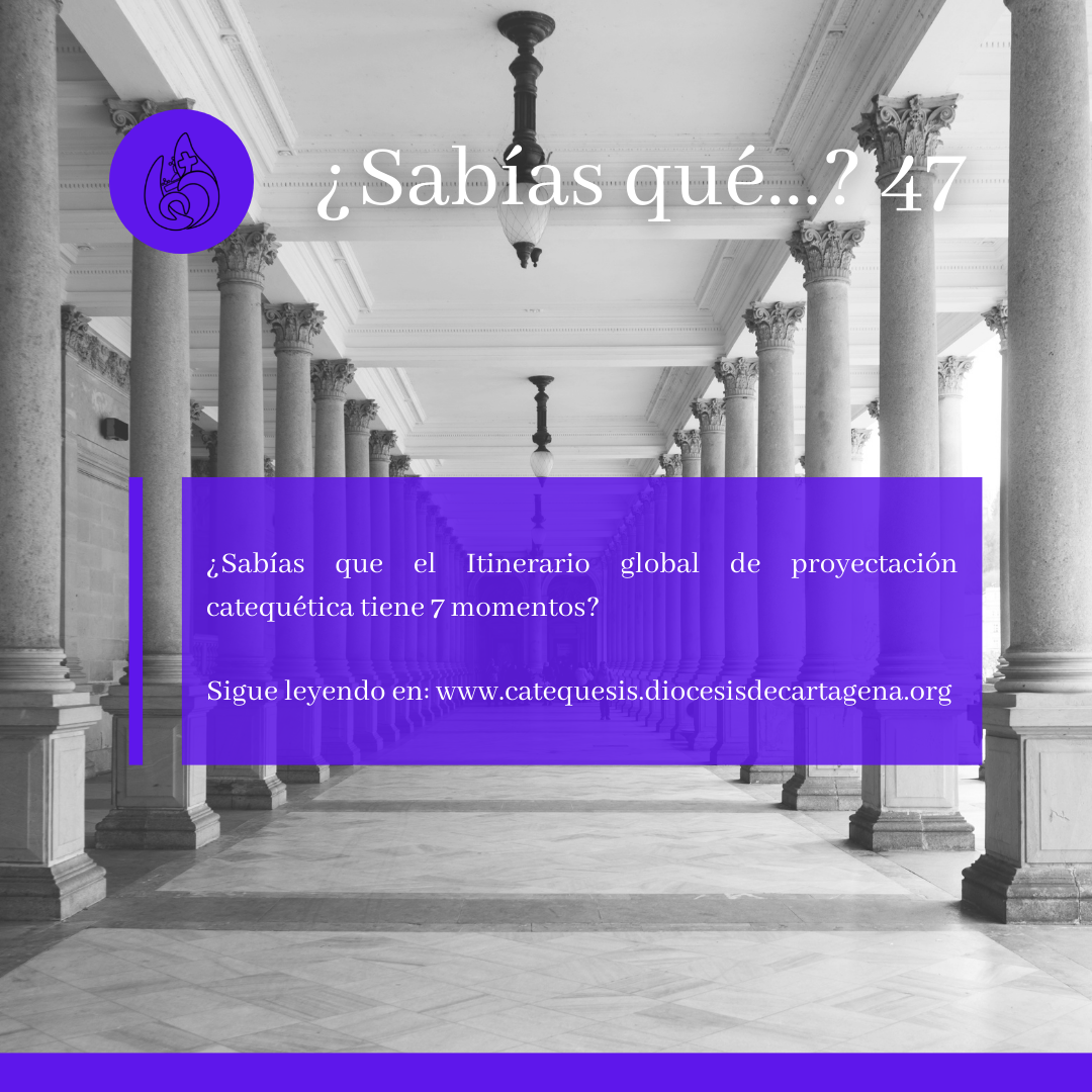 ¿Sabías que el Itinerario global de proyectación catequética tiene 7 momentos? A saber: 1. Momento cognoscitivo (observar la situación de salida); 2. Momento interpretativo (interpretar, valorar, problematizar la situación); 3. Momento proyectativo (planificar idealmente la acción catequética); 4. Momento programatico (programar la acción proyectada); 5. Momento operativo (experimentar y realizar lo programado); 6. Momento valorativo (evaluar lo realizado); 7. Momento re-proyectativo (abrir de nuevo el itinerario de proyectación).