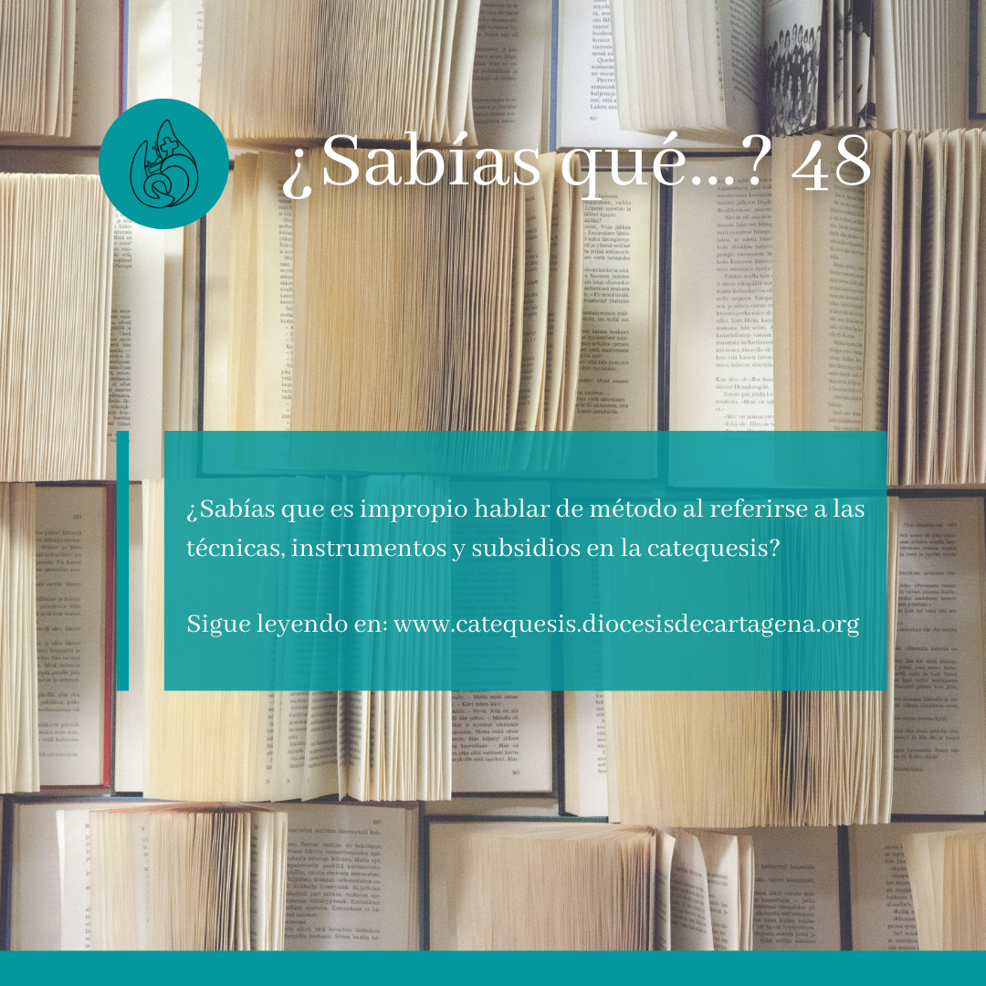 ¿Sabías que es impropio hablar de método al referirse a las técnicas, instrumentos y subsidios en la catequesis? Existe un amplio espectro de técnicas o metodologías de acción, junto a la gran variedad de instrumentos, documentos y materiales susceptibles de ser usados en la catequesis. Existe una enorme variedad de técnicas de comunicación y de animación: conferencia, foro, entrevista, panel, role playing, brainstorming, debate, fotolenguaje, quiz, etc. No menos rica y estimulante se presenta la lista de los instrumentos y materiales utilizables en la catequesis: libros, documentos, fotos, diapositivas, pancartas, discos, montajes, películas, videos, diaporamas, programas de radio, de TV, etc. Ante este amplio abanico se impone el problema propiamente metodológico de la selección adecuada de la técnicas e instrumentos más aptos para cada proceso catequético. Son varios los factores a tener en cuenta: el tipo de catequesis, las personas implicadas, los objetivos a alcanzar, los medios y tiempos concretos de que se dispone, etc. Será importante no dejarse llevar por motivos contingentes o arbitrarios, para orientarse hacia las técnicas e instrumentos que mejor respondan, en cada situación, a los requisitos catequéticos de la proyectación.