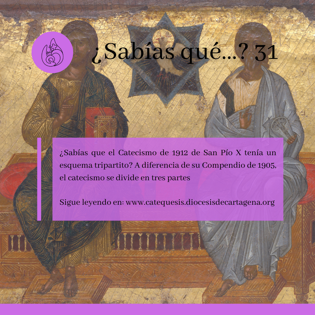 ¿Sabías que el Catecismo de 1912 de San Pío X tenía un esquema tripartito? A diferencia de su Compendio de 1905, el catecismo se divide en tres partes, a saber: la fe o dogma (Credo); la moral o deberes (Mandamientos); y la gracia, subdividida en dos partes, tales como los medios productivos por la gracia (Sacramentos) y los mediso impetrativos por la gracia (Oración).